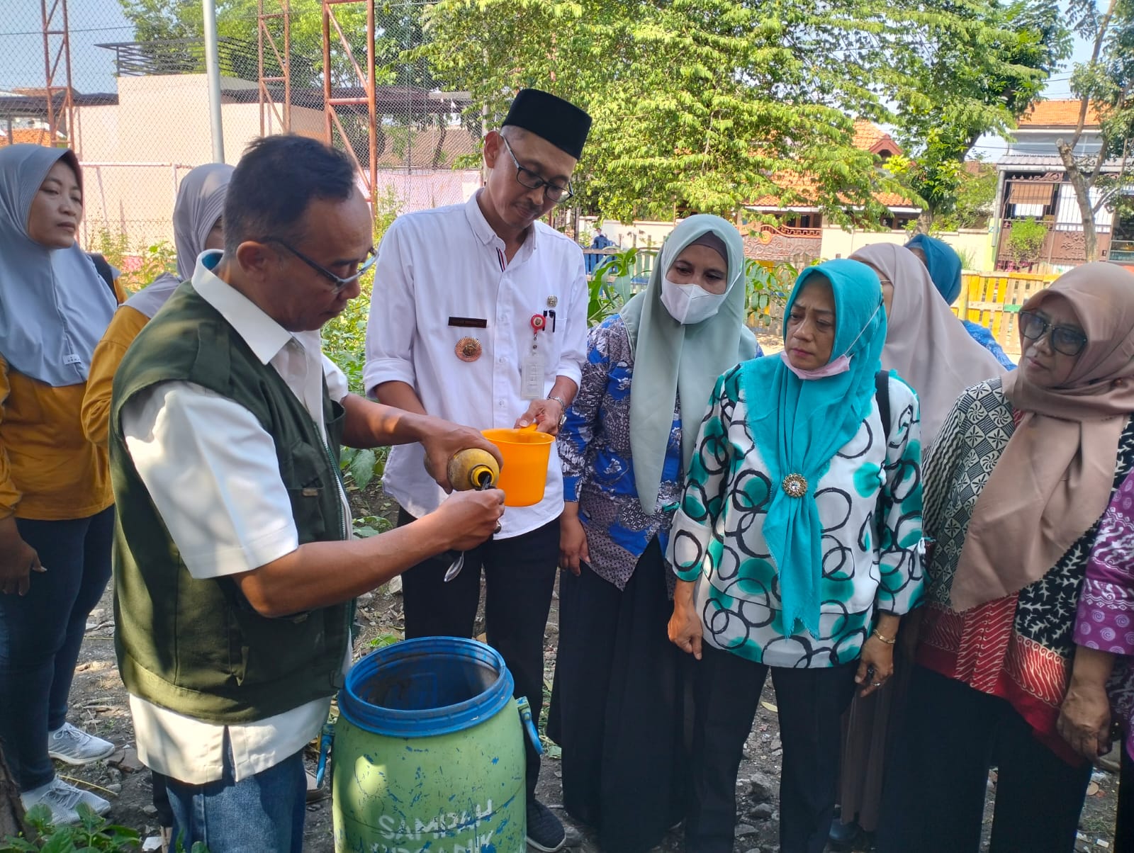 RILISJATENG.COM- Sebanyak 30 kader PKK, FKK, dan KWT Kelurahan Bulu Lor s mengikuti pelatihan pembuatan pupuk kompos dari limbah rumah tangga. Bahan yang digunakan cukup sederhana yakni gentong bekas yang telah dilubangi untuk tempat fermentasi limbah menjadi pupuk.