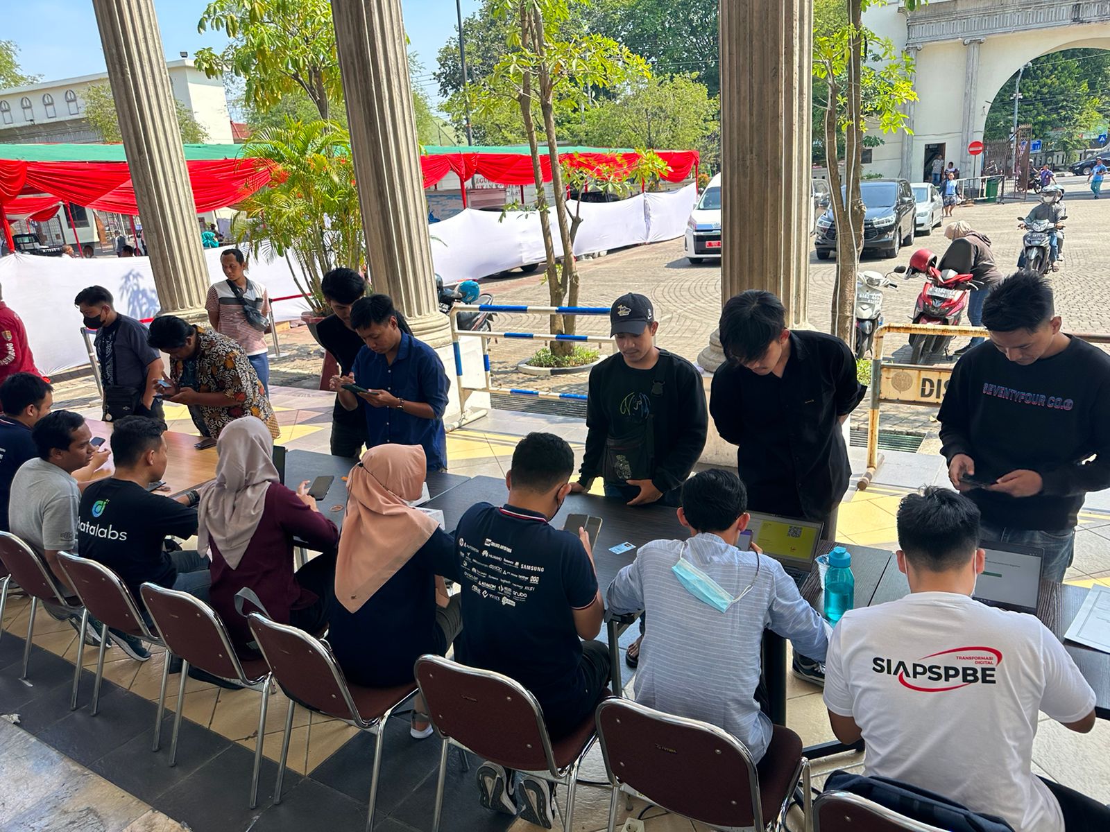RILISJATENG.COM- Dalam Rangka Penutupan HUT 476 Kota Semarang & Puncak Pekan Anti Korupsi. Pemerintah Kota Semarang menggelar resepsi dengan konsep pesta rakyat, dalam acara tersebut akan hadir band legendaris Indonesia yaitu Slank pada tanggal 21 Mei 2023 di Stadion Diponegoro Semarang. Untuk penukaran tiket dengan gelang wajib dilakukan, karena nantinya gelang tersebut digunakan ketika memasuki venue Konser Slank. Penukaran tiket dapat dilakukan pada tanggal 19-20 Mei 2023 di depan Gedung Diskominfo Kota Semarang. Penukaran tiket pada tanggal 19 Mei 2023 pada pagi hingga siang hari di Lobby DPRD terpantau tertib dan lancar. Masyarakat cukup antusias dalam penukaran tiket ini. Nantinya untuk masyarakat yang ingin menonton konser tersebut melalui Live Streaming dapat mengakses di chanel Youtube @semarangpemkot.(RLS)