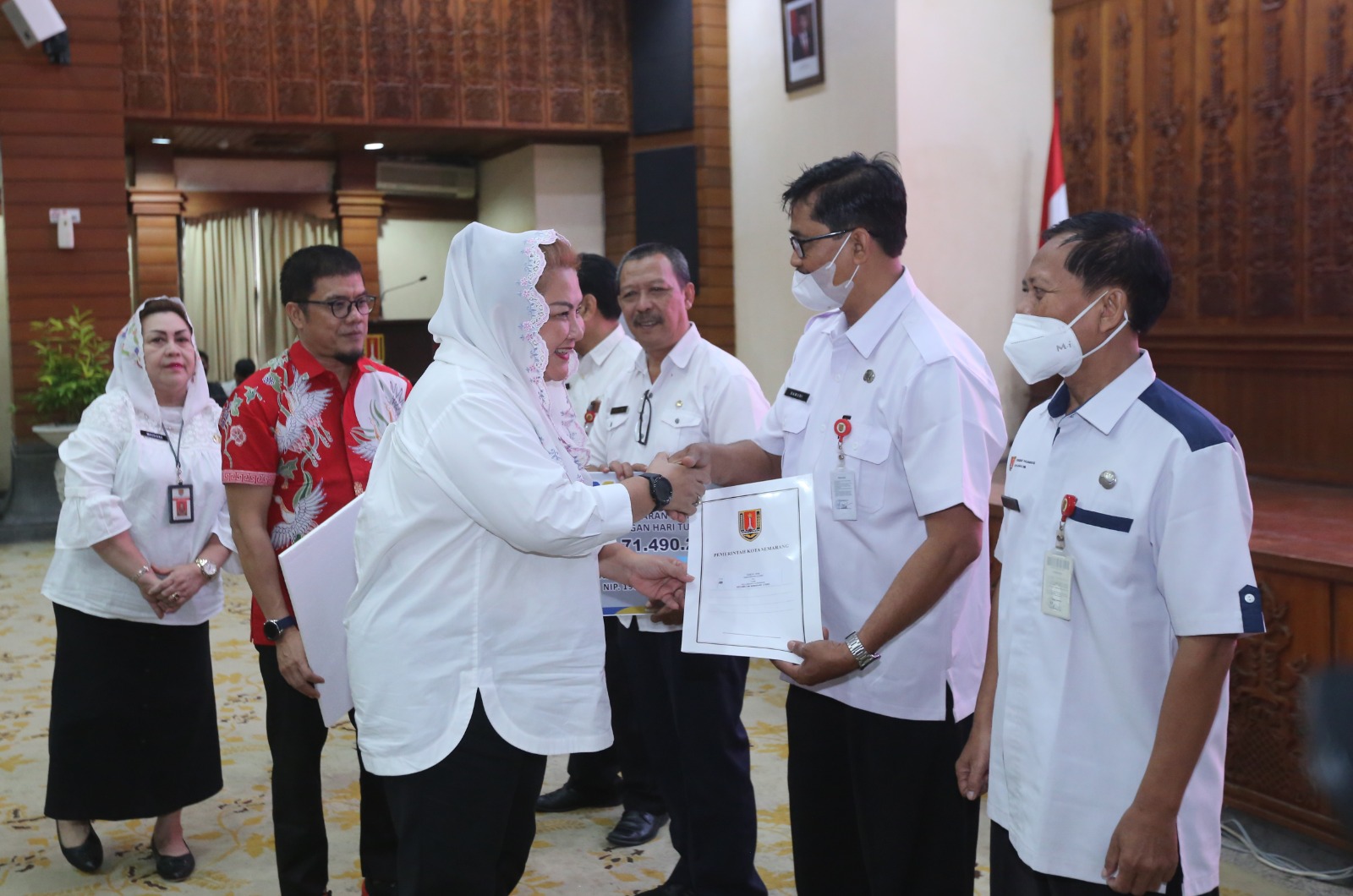 RILISJATENG.COM- Hevearita Gunaryanti Rahayu, melepas calon jamaah haji pegawai ASN Pemerintah Kota Semarang di Ruang Loka Krida Gedung Moch. Ikhsan lantai 8, Rabu (24/5). Ini menjadi tahun kedua keberangkatan haji kembali dibuka pasca pandemi Covid-19.