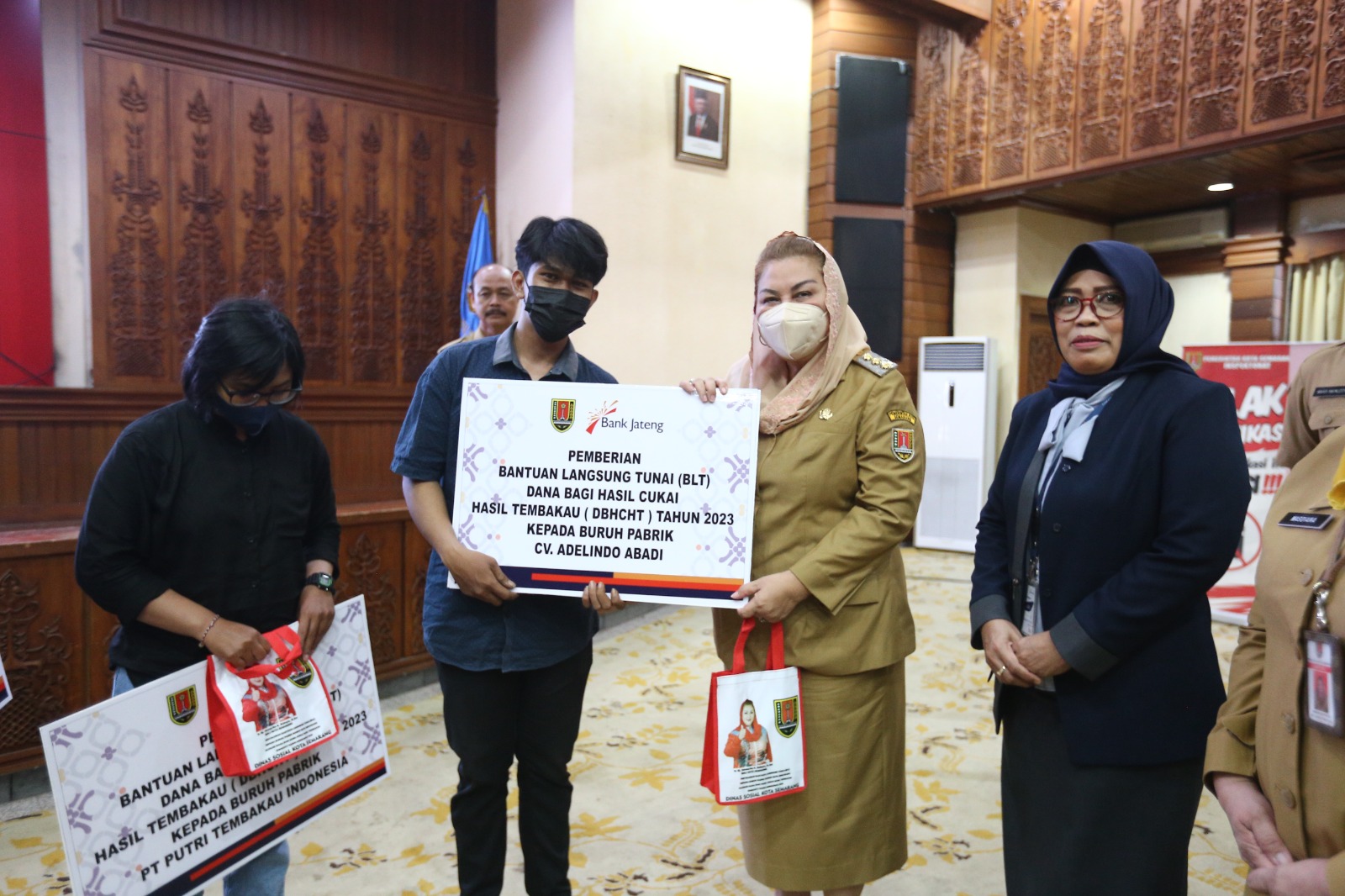 RILISJATENG.COM- Wali kota Semarang Hevearita Gunaryanti Rahayu dan Dinas Sosial (Dinsos) Kota Semarang membagikan Bantuan Langsung Tunai (BLT) Dana Bagi Hasil Cukai Hasil Tembakau (DBHCHT) kepada 1.666 buruh pabrik rokok yang ada di kota Semarang.