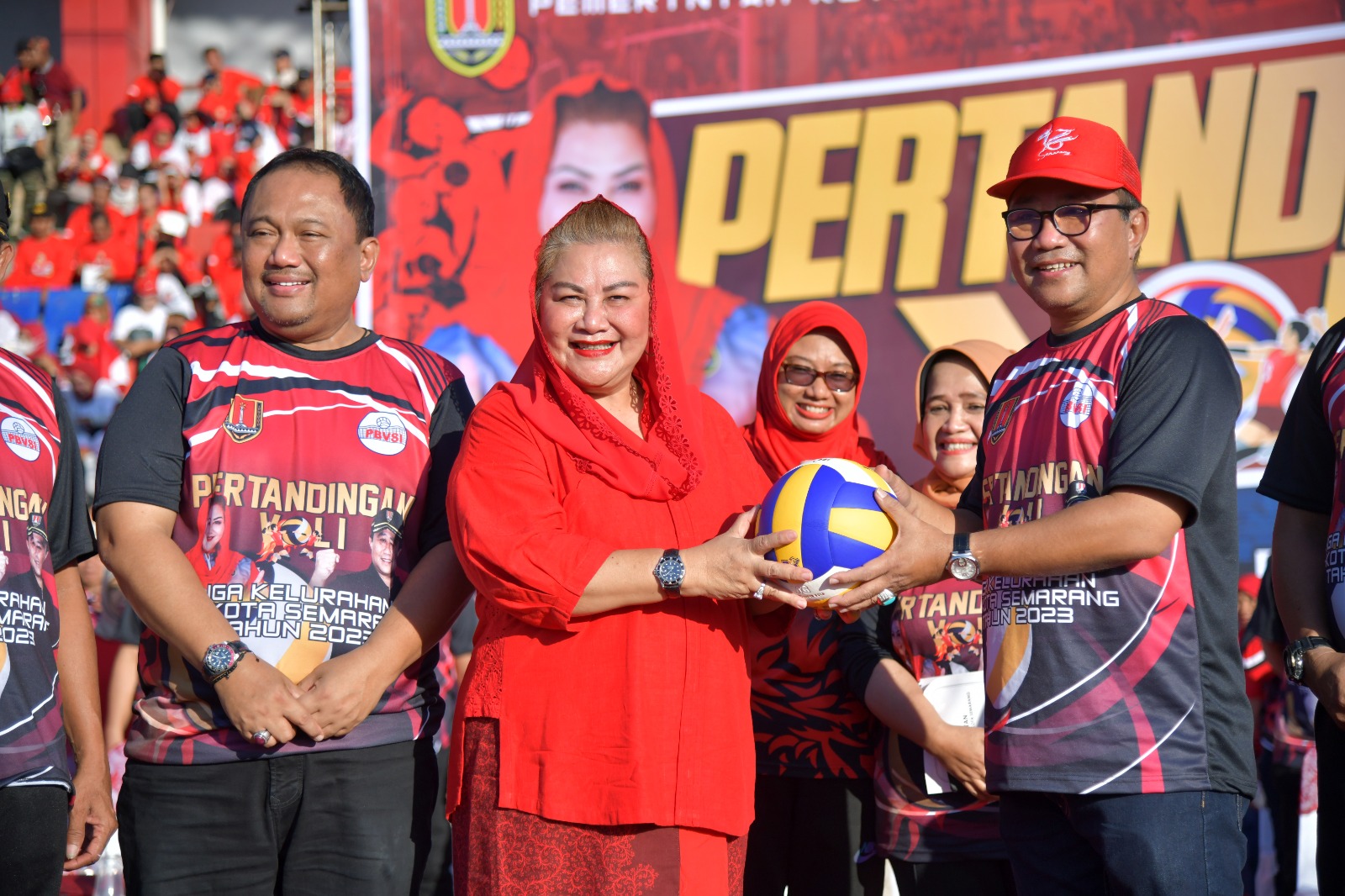 RILISJATENG.COM- Membuka pertandingan liga bola voli antar kelurahan se-kota Semarang, Wali kota Semarang Hevearita Gunaryanti Rahayu berharap masyarakat kota Semarang bisa selalu guyub, rukun dan bisa selalu bersama-sama dalam berbagai kegiatan. Perempuan yang akrab disapa Mbak Ita tersebut bersyukur dengan diadakannya kembali pertandingan liga bola voli yang sempat vakum selama 10 tahun.