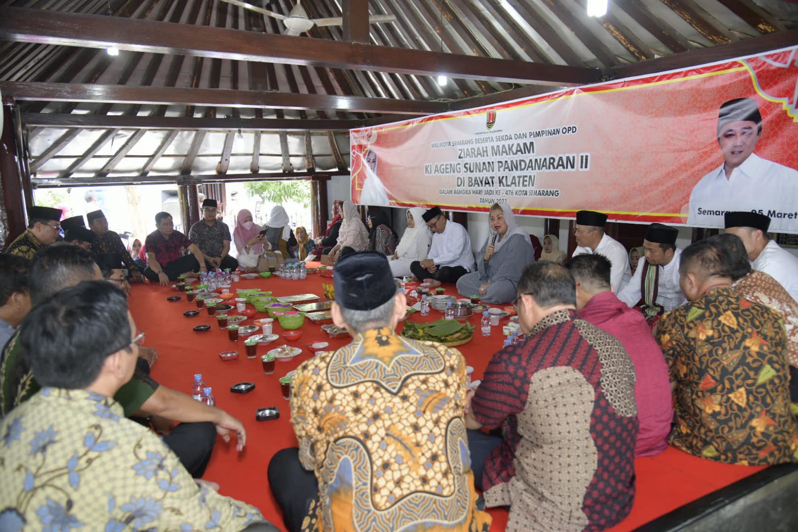 RILISJATENG.COM– Memperingati Hari Jadi ke-476 Kota Semarang, Minggu (5/3) Wali kota Hevearita Gunaryanti Rahayu beserta jajaran Pemerintah Kota Semarang melaksanakan ziarah ke makam Sunan Pandanaran II di Bayat, Klaten. Tak hanya sebatas rutinitas, wali kota yang akrab disapa Ita menegaskan jika ziarah tersebut dilakukan sebagai upaya agar generasi penerus bisa mencontoh semangat perjuangan Ki Ageng Sunan Pandanaran II atau Sunan Tembayat.